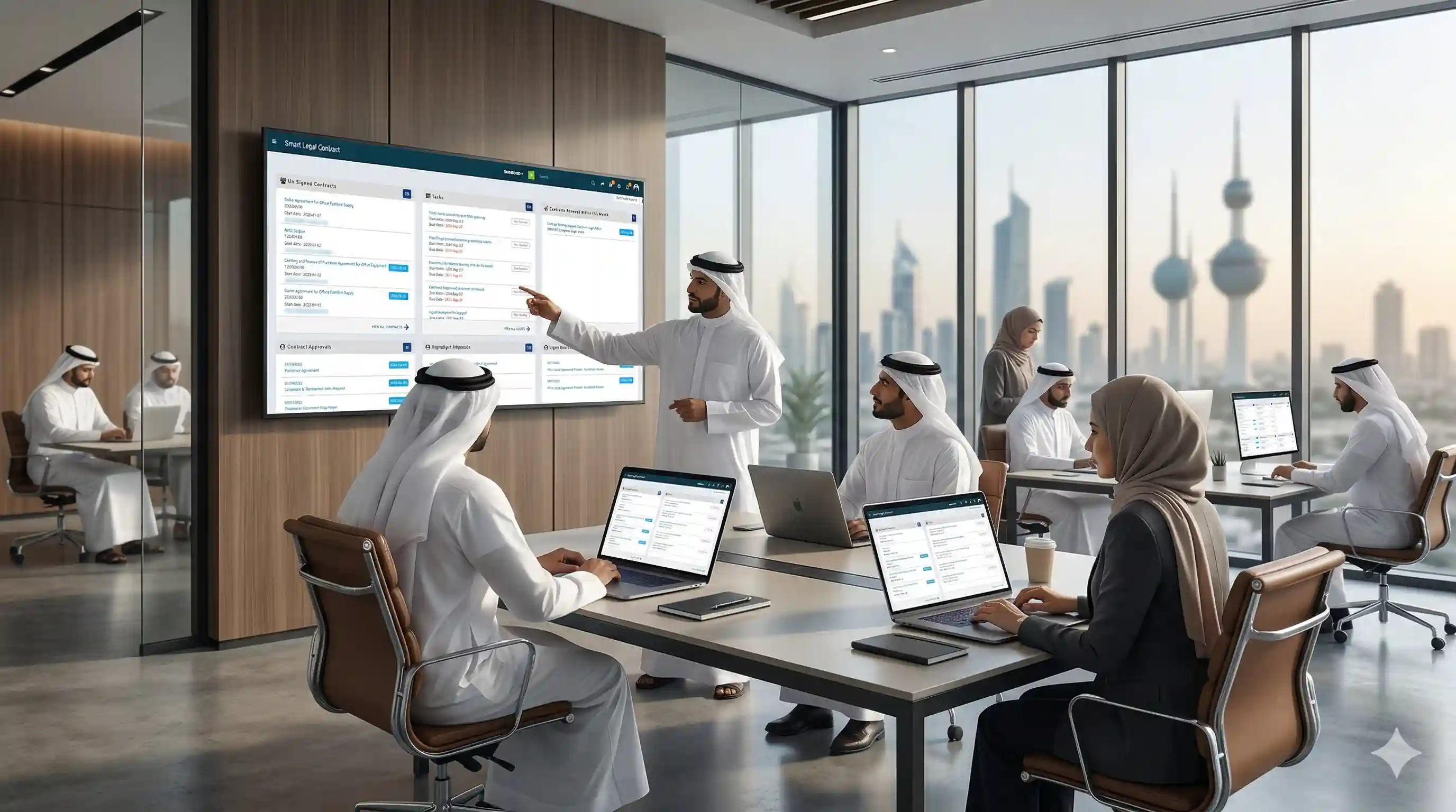 • Real-time Dashboards: Instant visibility into contract statuses, pending tasks, and performance for Kuwait teams.